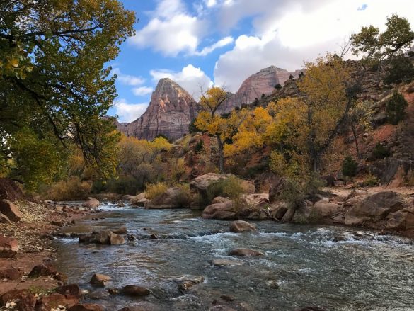 Our campground in Zion was surrounded by the red rocks cliffs and was right on the river. It was so nice to hear the rushing water as we went to sleep that night. The kids were off early to learn about the park and get their ranger badges. Zion uses a bus system to shuttle people around which can be a pain for little people. Thankfully our visit was during the off season and not during the crowded times.