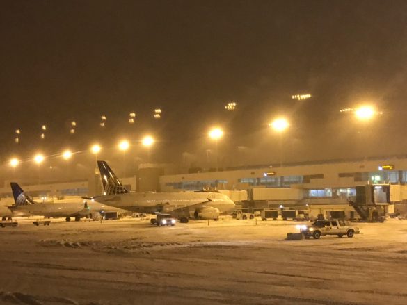 Denver as always had a bumpy approach that shook up Luca.  Once we hit the ground we could see that it was a full on blizzard.  There were trucks with flashing lights buzzing around everywhere you looked.  The snowplows were pushing huge mounds of snow off of the taxi lanes and runways.  There must have been 50 de-icing trucks blasting off all of the outgoing planes.